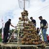 Dengan menggunakan pincuk atau wadah makan yang terbuat dari daun pisang, keduanya terlihat ngobrol gayeng mengenai kondisi Kabupaten Kediri dengan adanya bandara yang tengah dibangun.